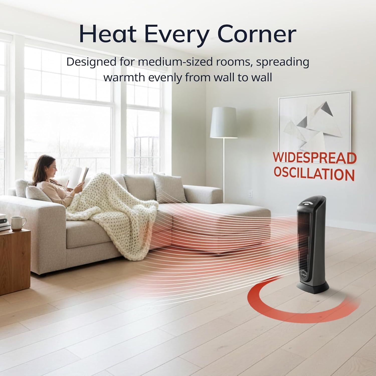 • Oscillating Heater Function: Equipped with widespread oscillation to circulate air evenly—an upgrade over static models for living rooms or bedrooms.